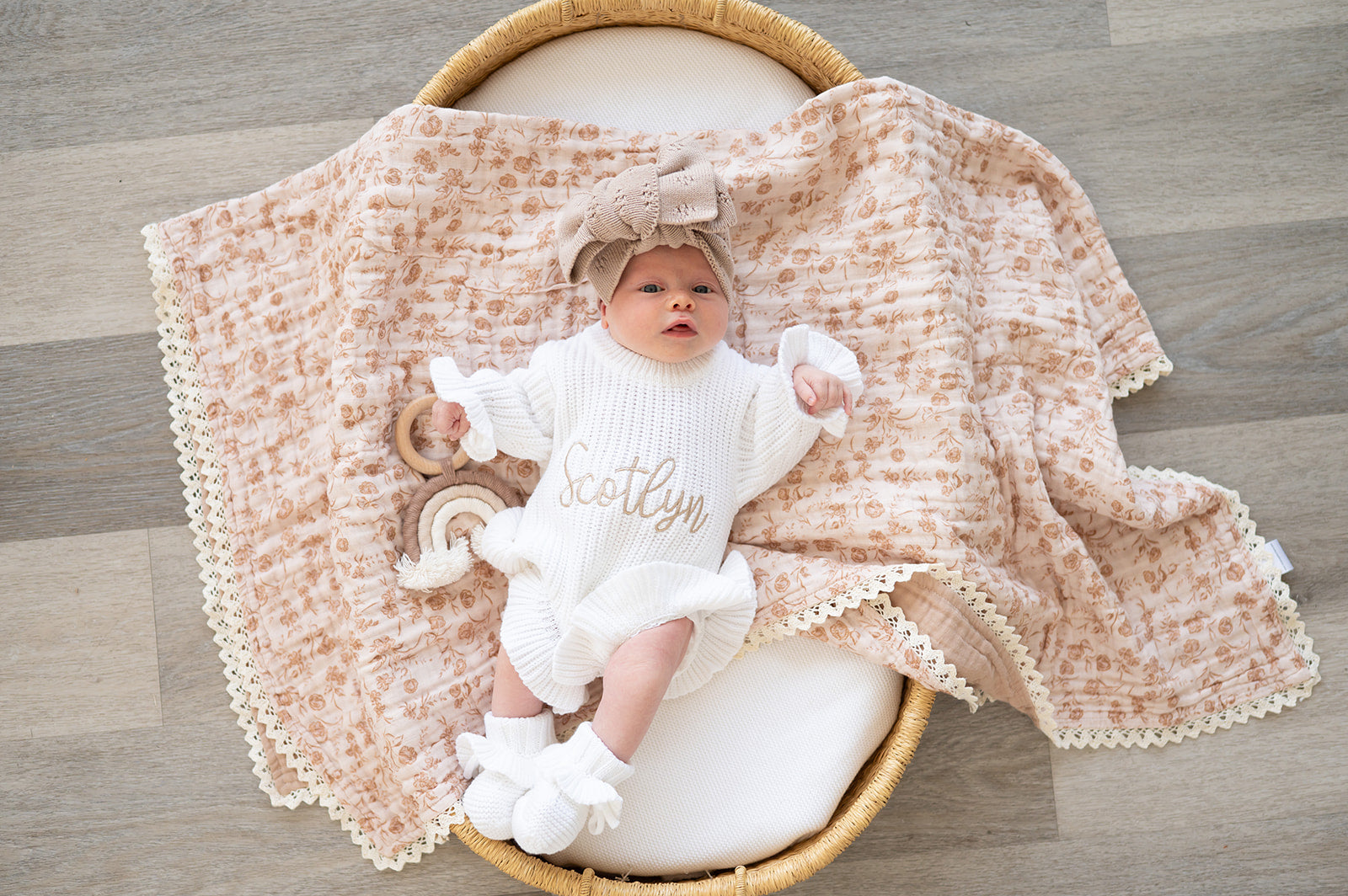 Because every detail matters. Our products are made with gentle, high-quality fabrics and designed to create beautiful, meaningful moments—from baby’s first outfit to keepsakes you’ll treasure forever.