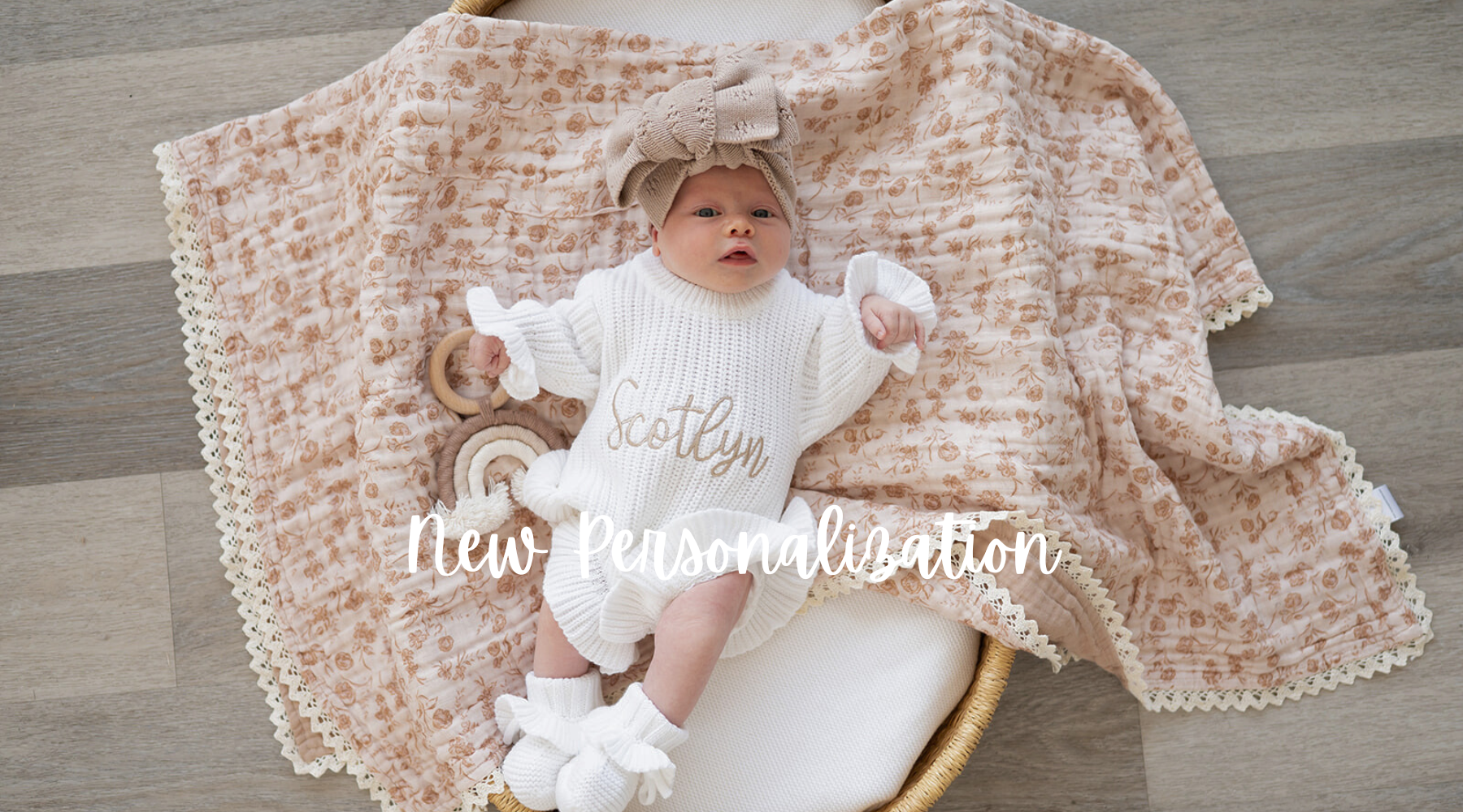 Add a personal touch with our custom embroidery. Personalize blankets and outfits with your baby's name or as a special gift.