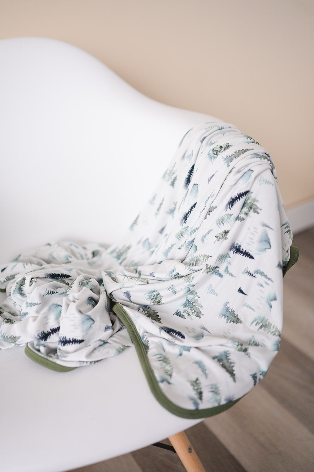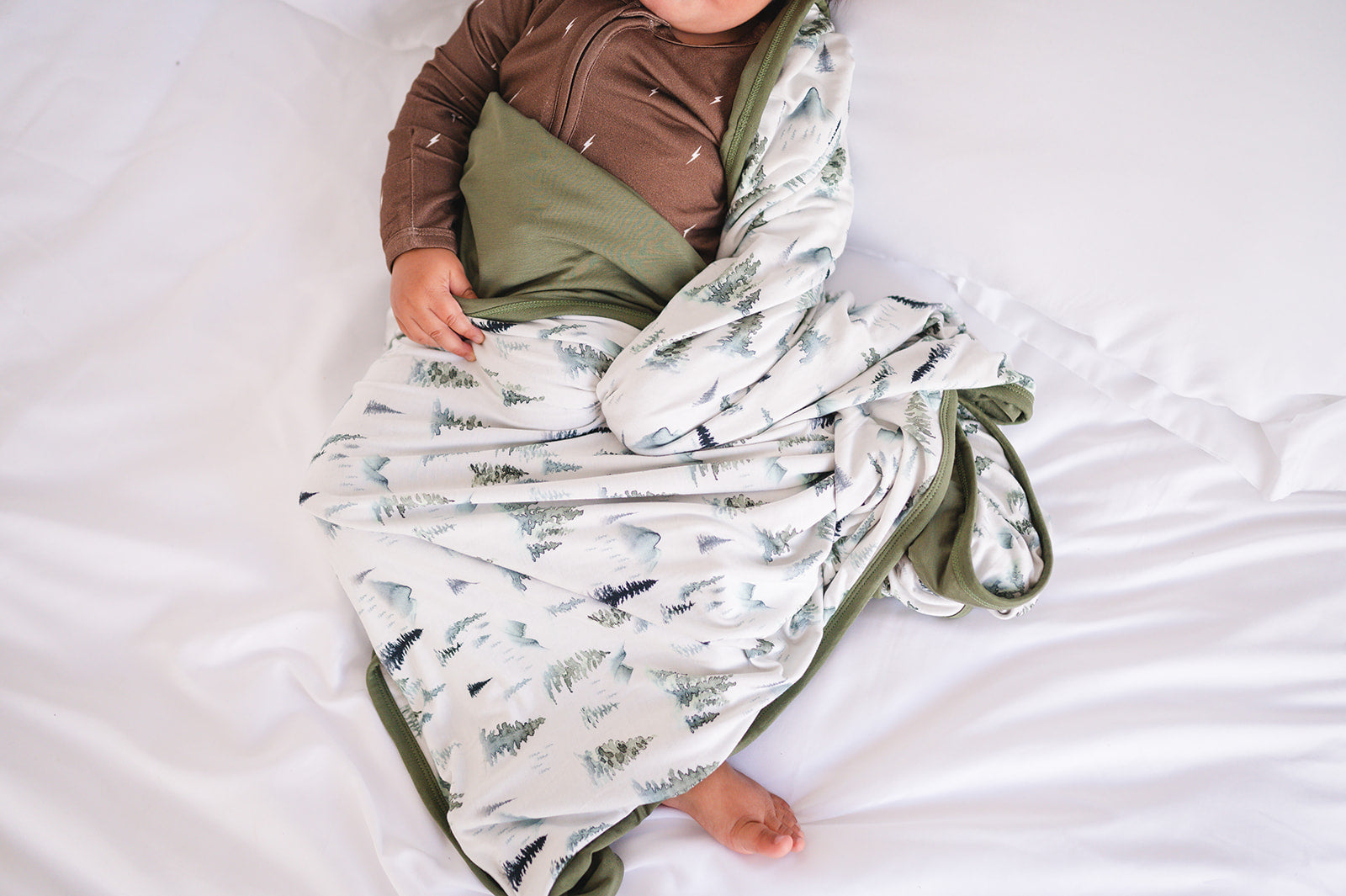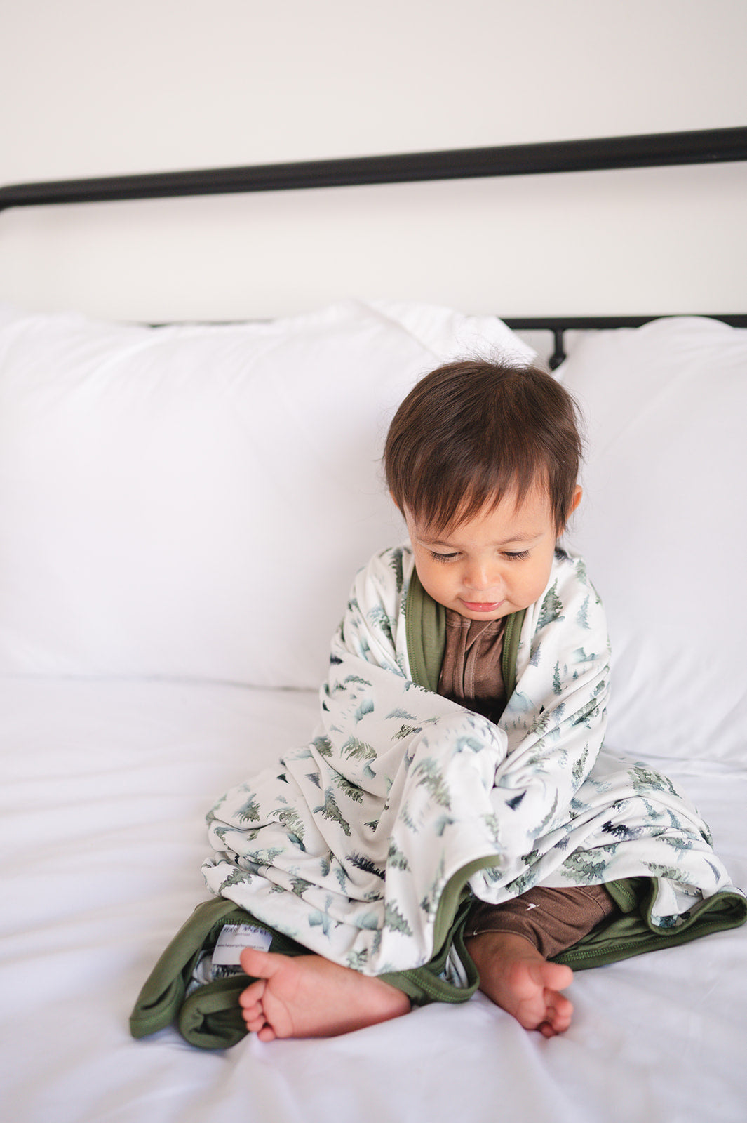 Transform your toddler's bedtime into a woodland adventure with our Green Forest Bamboo Reversible Blanket. Made from soft and breathable bamboo fabric, this versatile blanket features a tranquil green forest design on one side and a complementary solid green on the reverse.