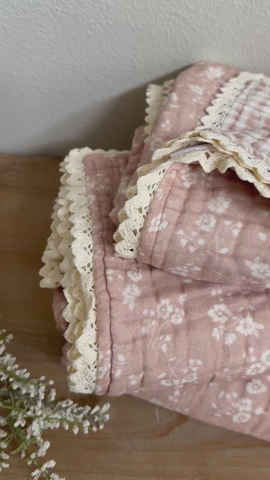 Wrap your little one in the luxurious softness of our Muslin Organic Cotton Sweet Pea Lace 6-Layer Baby blanket. Made with utmost care and attention to detail, this blanket offers not only exceptional comfort but also a touch of elegance. The six layers of delicate muslin organic cotton provide a gentle embrace, keeping your baby cozy and warm. Create cherished moments of snuggles and warmth with this sweet baby blanket.
